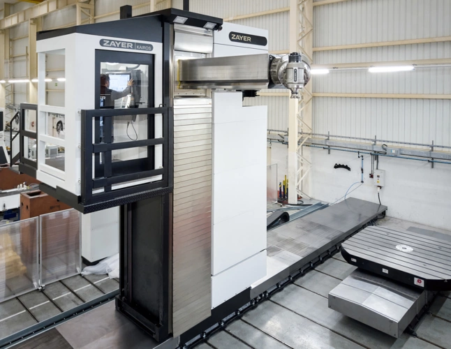 Die ZAYER KAIROS ist ein modular aufgebautes Fahrständer-Bearbeitungszentrum, das durch maximale Flexibilität überzeugt. Ob mit verschiedenen Fräsköpfen, Drehtischen, Plattenfeldern oder Vorsatztischen – die KAIROS passt sich perfekt an Ihre Bearbeitungsaufgaben an.